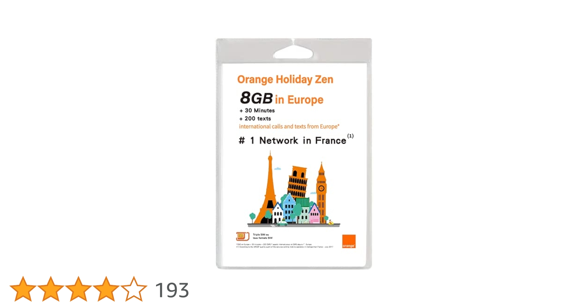 Orange Holiday ヨーロッパ - プリペイドSIMカード ー 【Amazon限定】4G通信 (3+5) GB 30分 SMS 200通 + SIMカードホルダー、SIM取り出しピン (8GB) 特典適用中